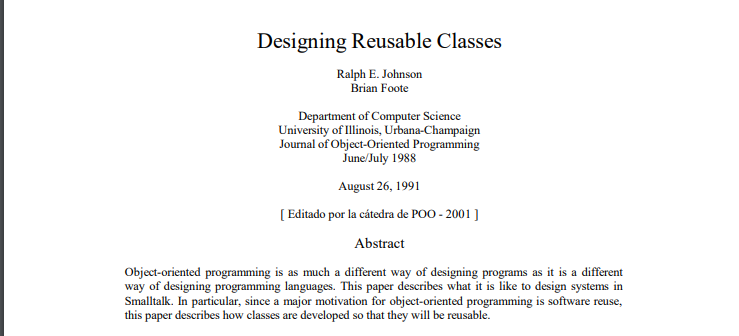 circulating sporadically before it, but Designing Reusable Classes (1988) is credited as the paper that