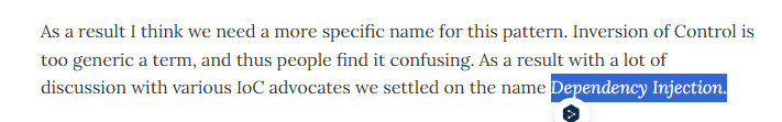 그렇기때문에 다양한 IoC 옹호자들과 많은 논의를 거쳐 의존성 주입이라는 이름을 사용하기로 결정했습니다.