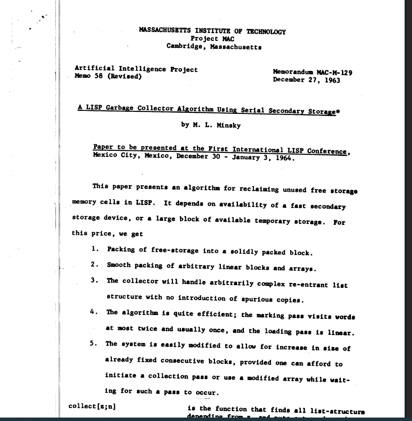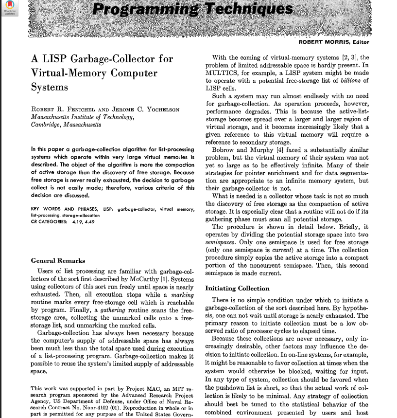— Robert R. Fenichel and Jerome C. Yochelson, *A LISP Garbage-Collector for Virtual-Memory Computer Systems* (1969)