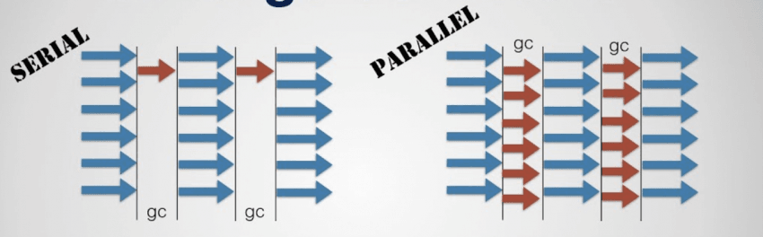 In this approach, GC threads and application threads run simultaneously to minimize Stop-the-World pauses. A dedicated GC thread operates separately, performing tasks such as marking or copying even while the application is running. Because it can take advantage of multiple cores, it is well suited for large-scale applications.