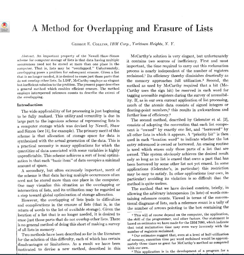 — George E. Collins, "A Method for Overlapping and Erasure of Lists" (1963)