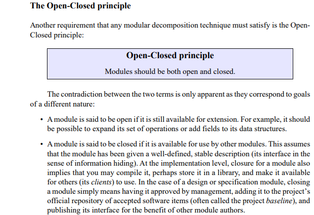 O - Open/Closed Principle (OCP) | Software entities should be open for extension but closed for modification. | Bertrand Meyer (1988) |