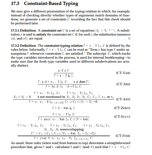 제약 기반 타입 시스템은 타입 추론 과정에서 제약을 수집한 후, 일괄적으로 제약(Constraint)를 모아서 해결하는 방식이다.