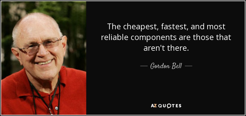 가장 저렴하고, 빠르며, 믿을 수 있는 부품은 존재하지 않는 부품이다. -Gordon Bell PDP 컴퓨터 설계자