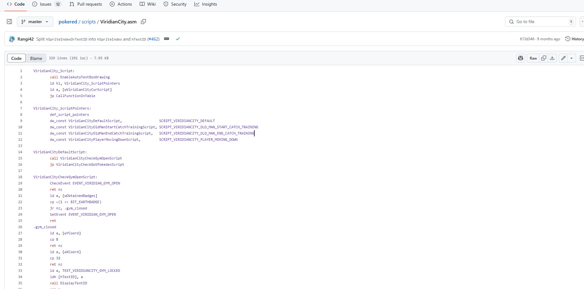 포켓몬 어셈블리어 코드 출처: https://github.com/pret/pokered