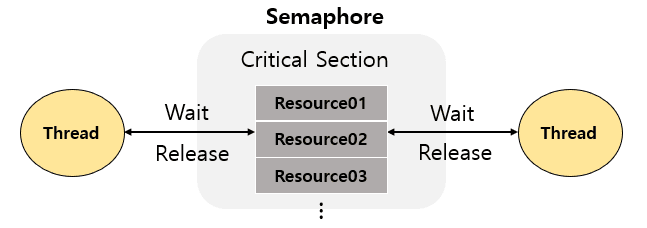 이렇게 세마포어는 자원의 “상태”를 숫자로 추상화하고,