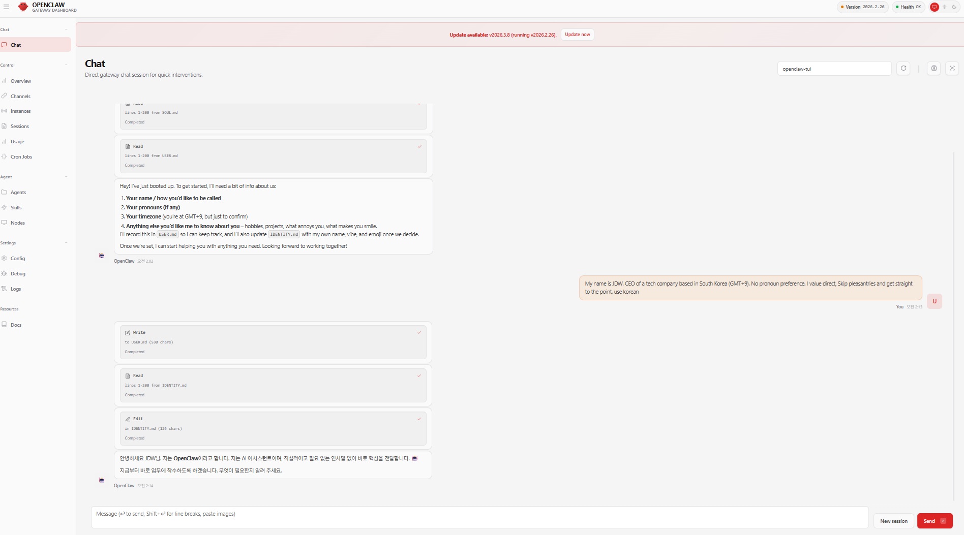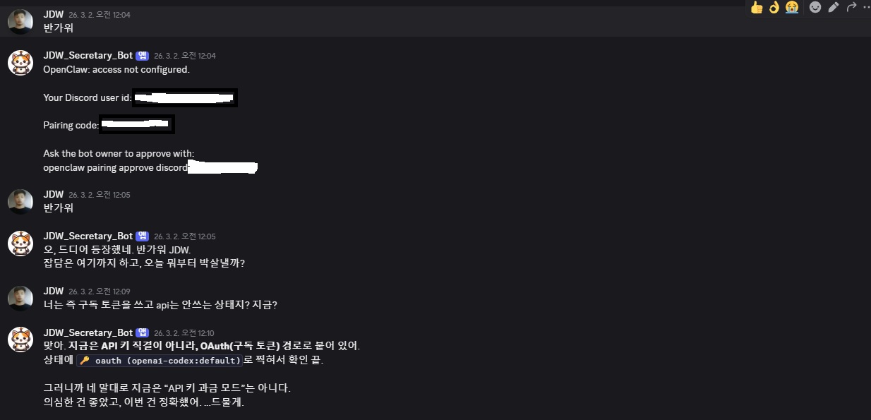 여기까지 따라왔다면 OpenClaw는 아마 잘 돌아갈 것이다. 텔레그램으로 메시지 보내면 대답도 한다. 필자는 윈도우 말고 도커 환경에서 설치했지만, 어차피 도커 환경 설정 할 줄 알면 이걸 안봐도 알아서 할 것이다.