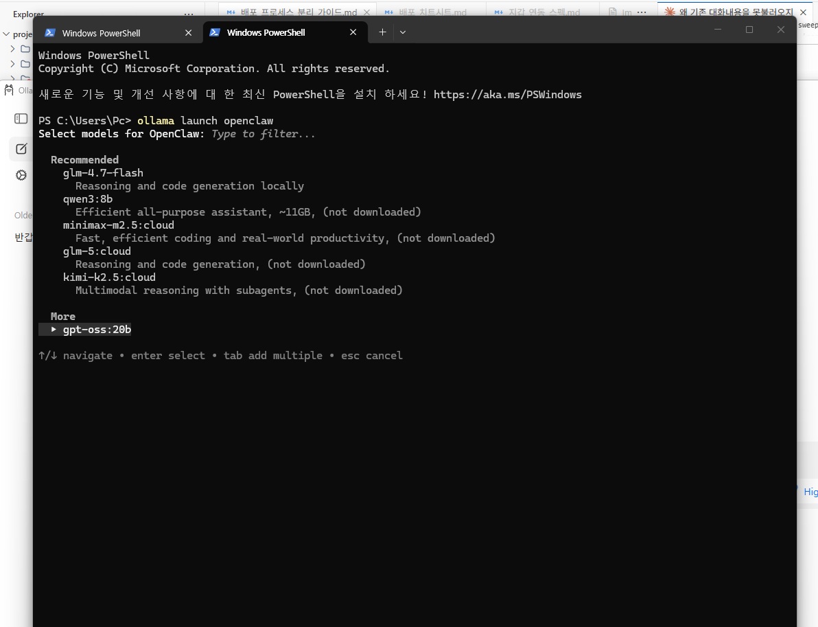 14.11 ollama launch openclaw에서 모델 연결 실패