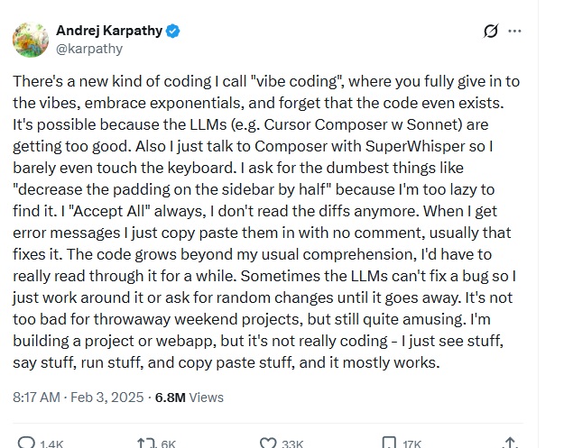 (바이브 코딩이 최초로 쓰인 카파시의 게시글)